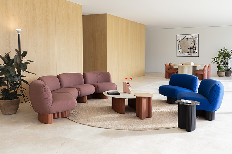 La colección abarca tanto módulos individuales como composiciones de mayor envergadura, brindando soluciones versátiles para salones, oficinas o espacios públicos. Se distingue, asimismo, por su fácil mantenimiento y su compromiso con la sostenibilidad, ya que está elaborada con materiales reciclables.