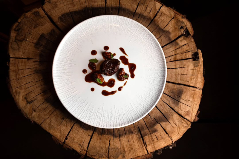 Cebolla muy asada y pochada en un jugo de chivo lechal y alcaparra