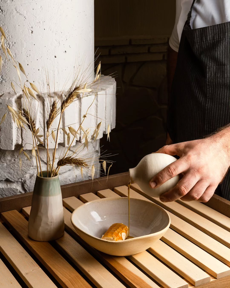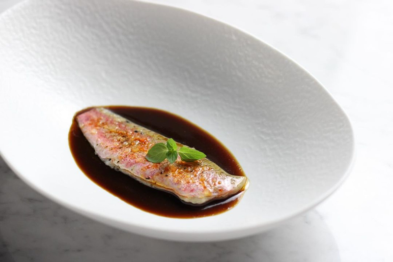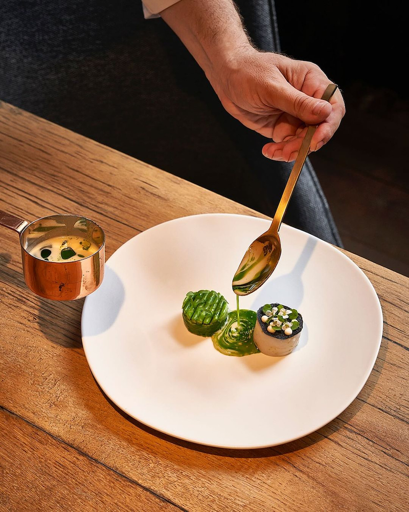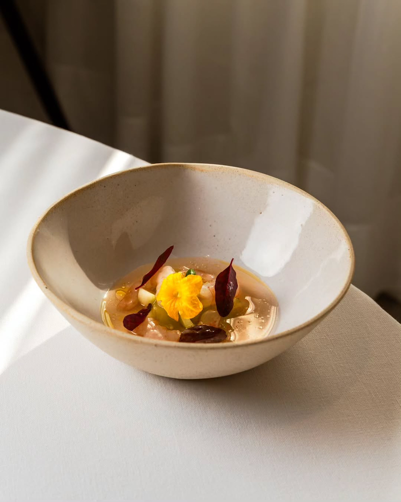 Dirigido por los chefs Guillem Gavilan, responsable de los platos salados, y Pau Jamas, encargado de los postres, el local presenta dos menús degustación: Petit Voramar y Gran Voramar. Aquí nos detendremos en el primero, una opción cuidadosamente diseñada que no supera los cien euros, pero que captura el espíritu de la casa: