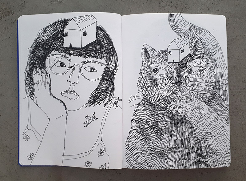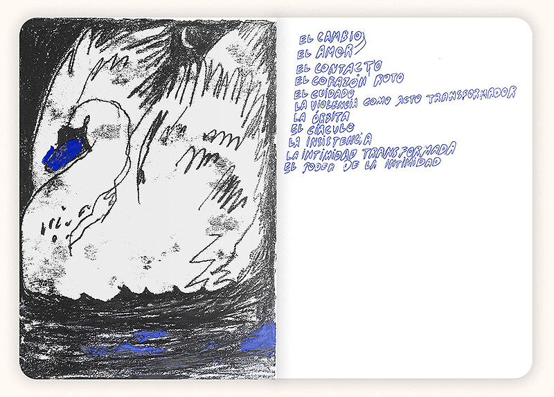 Para Lucía Coz, el acto de dibujar va más allá de la estética: es un espacio de contemplación y resistencia frente al ruido del mundo. En sus cuadernos, el dibujo se convierte en palabra, cuerpo y refugio. Es un acto de escucha activa, donde los animales enseñan que sanar es posible, que sentir no es un error y que, en silencio, podemos aprender a entender su idioma. La artista nos invita a detenernos, a escuchar y a conectar con esa parte sensible que todos llevamos dentro, a través de un lenguaje visual cargado de afecto y sinceridad.