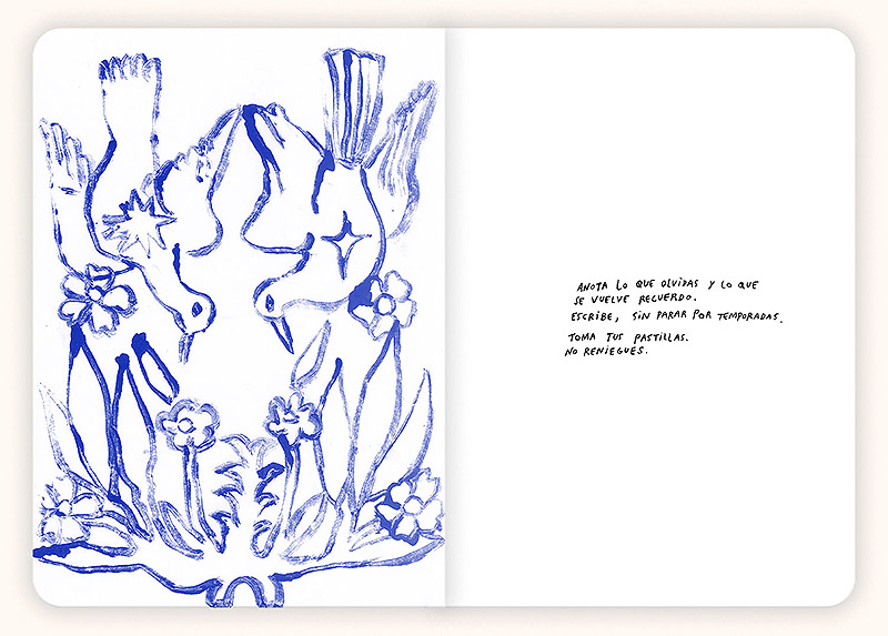 Siempre Quise Hablar con los Animales recopila ilustraciones y apuntes que nacen del registro diario, del hábito de dibujar como una forma de procesar emociones y explorar temas como la salud mental, la memoria y la ligereza. Concebido entre 2019 y 2025, el libro refleja un territorio que oscila entre lo personal y lo naturalista, una cartografía emocional donde las estaciones del ánimo se suceden sin lógica aparente, pero con una profunda verdad interior. La línea suelta y expresiva de Coz no solo forma figuras, sino que también expresa modos de estar en el mundo, pensamientos y sentimientos que se revelan en cada trazo.