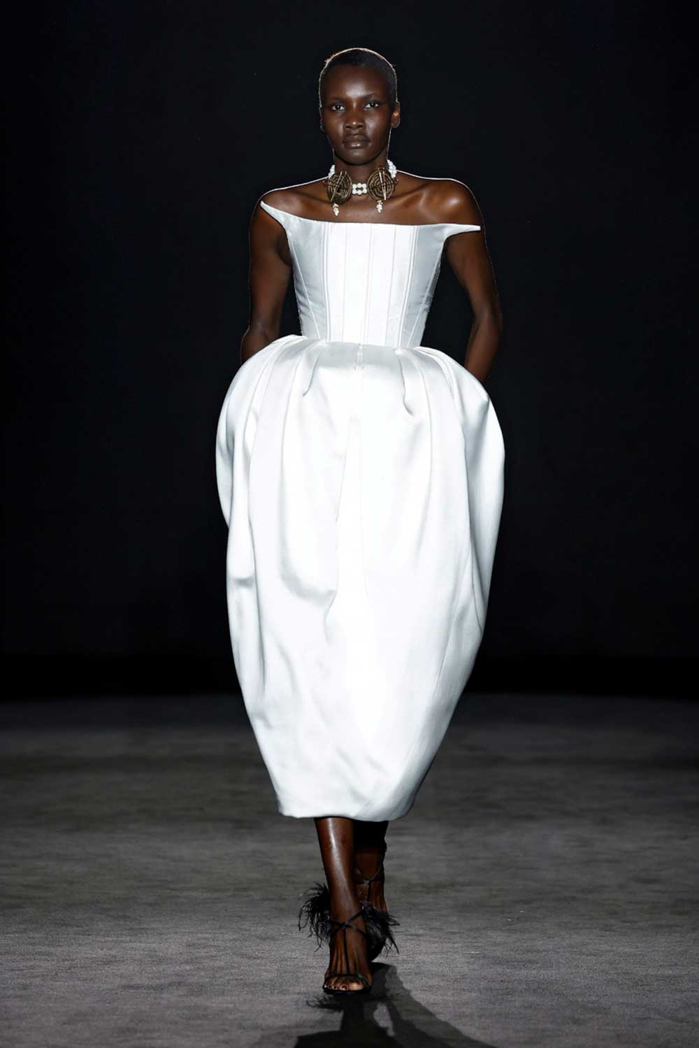 4- BIELO OSCARLEON: La marca catalana con Oscar León como maestro de la costura al frente, presentó una propuesta con múltiples referentes culturales. Diseños que fluyen entre géneros y muestran cómo la sociedad evoluciona igual que lo hace la moda.