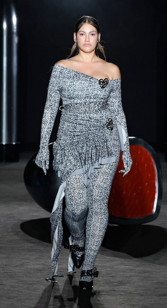 12- COMPTE SPAIN: Otra de las jóvenes firmas de moda española que vemos en 080 Barcelona Fashion 2023. En esta ocasión, viene desde Valencia para hablarnos de todo tipo de traumas infantiles a través de sus personales diseños. Para reforzar sus looks se ha apoyado en la joyerís de Jane Bardot.