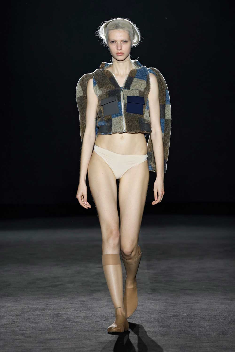 Un clásico en 080 Barcelona Fashion es el desfile de Txell Miras. La diseñadora se supera en cada uno de sus desfiles, siempre apostando por la reflexión del mundo que nos rodea. Distòpia, es la colección de Txell Miras que, mediante abrigos de lana gruesa o líneas rústicas, habla sobre el clima y las variaciones que está teniendo y todos sufrimos de alguna manera. Un desfile que sirve como protesta sobre un tema actual que nos influye a todos, de alguna manera. La diseñadora hizo looks sin reglas, ni normas en el diseño con el único fin de reflexionar.