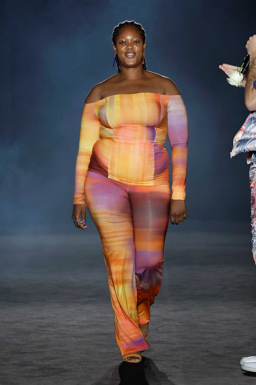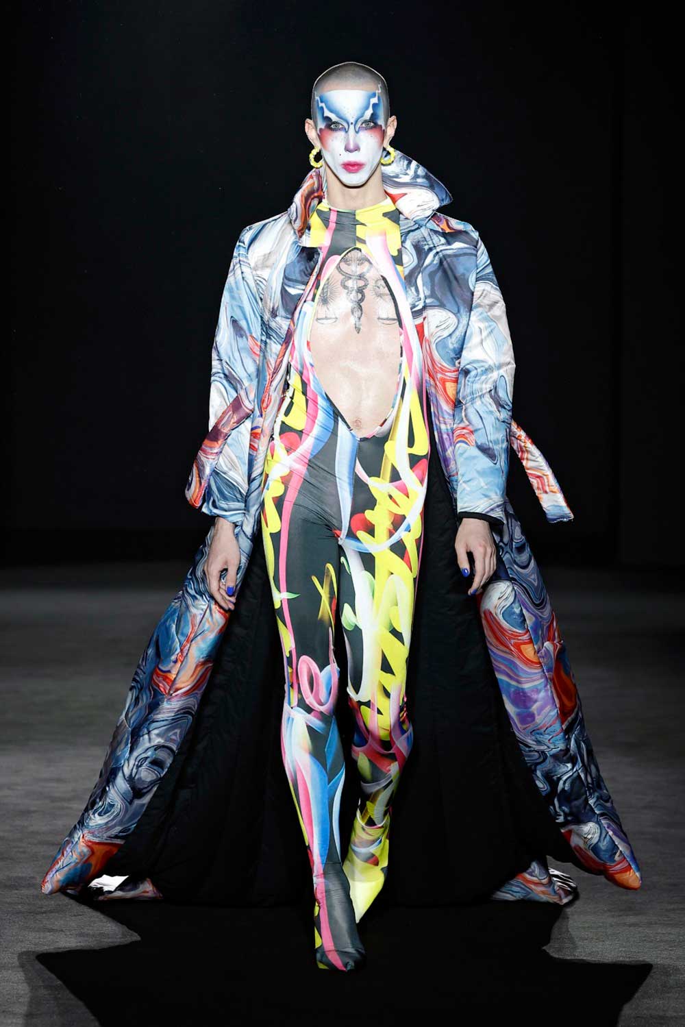 Toca el momento de fuera del mapa con cortes tradicionales. Bielo Oscar León regresa con una nueva propuesta, Permanecer o evolucionar, experimenta con los patrones para mostrar los estados de la palabra evolución en la sociedad. Estos han sido las reglas que han seguido para volver de una manera diferente. Destacó la fusión de colores neones, la comida y el tejido que funciona en cualquier género. Un detalle que llamó la atención es la moda masculina. Devolvió el sentido al diseño masculino que estaba en un plano estático sin riesgos.