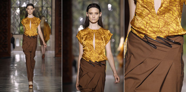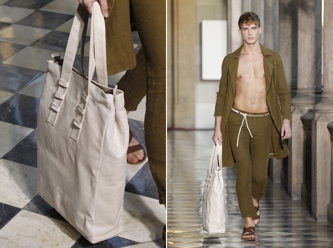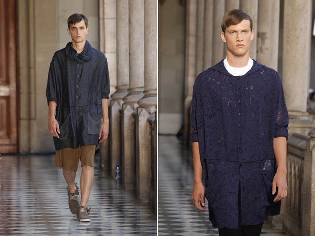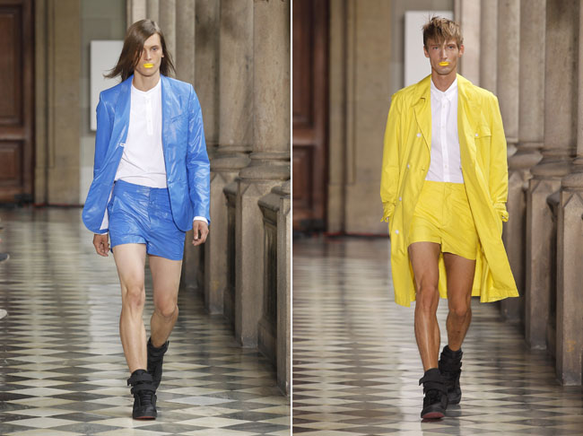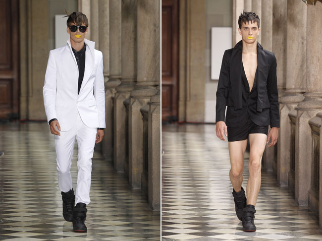 Ehud: Otra de las firmas internacionales presentes en Barcelona. Su colección masculina para la próxima primavera verano 2012 ya fue presentada con anterioridad en París (lo cual, en tiempos de la máxima accesibilidad a la información, le resta interés a su presencia en 080). Innovación en la combinación de tejidos y formas masculinas, toques eléctricos y efectos lúdicos sobre formas clásicas… Perfecto para un hombre lo suficientemente joven como para no tomarse totalmente en serio todavía.