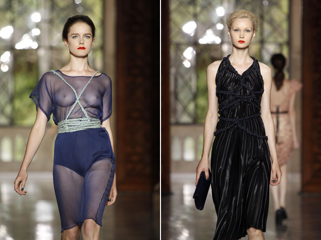 Juan Pedro López: La nota de prensa dice que “la colección es un estudio de la textura y el movimiento a través de la visión de la pintura del expresionismo abstracto de mitad del siglo 20. Referencias a Rothko, Gottileb, Bravo, Graham o Pollock”. Yo lo que vi fueron clásicas siluetas femeninas redibujadas mediante un sistema de cuerdas en forma de red.