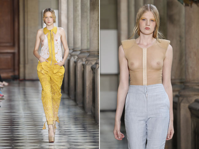 Mal-Aimée: Pareja formada por Leonie Hostettler y Marius Borgeaud, suizos residentes en París. En 080 presentan su tercera colección, primavera verano 2012, donde se mantienen ciertos códigos de las anteriores: una estética futurista de cómic, matices art decó y detalles propios de la alta costura. Les entrevistamos en el número de julio/agosto de Neo2 Magazine.