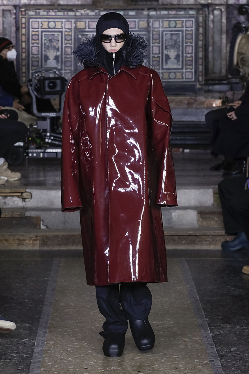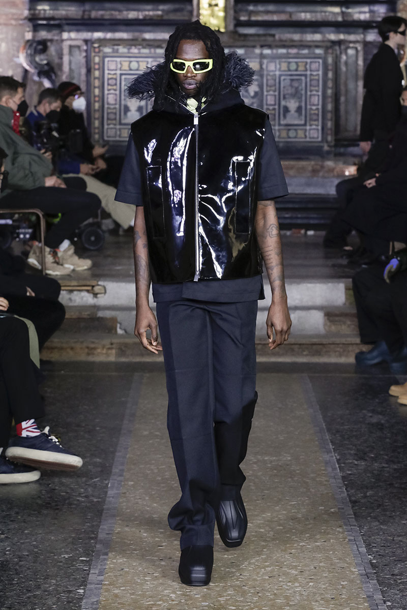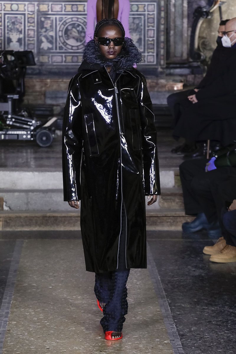 El PVC también es un material bastante notorio dentro de esta nueva propuesta de 1017 ALYX 9SM FW22 y se aplica en chaquetas, abrigos, chalecos sin mangas para conseguir una estructura rígida que aporta al usuario una silueta exagerada muy característica de la firma.