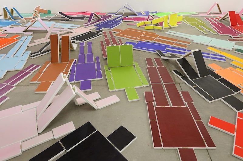 Mariela Scafati, Movilización, 2020. Vista instalación de 65 pinturas. Cortesía Mariela Scafati; Galería Isla Flotante, Buenos Aires; PSM, Berlin. Foto: Silke Briel