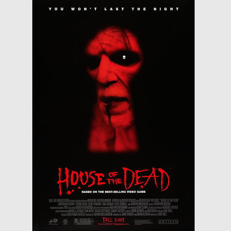House of the dead (2003). Toca hablar del alemán Uwe Boll, considerado por muchos como el ‘Ed Wood de los videojuegos’, ya que desde este título arrancaría toda una carrera de destrozos: Alone in the dark (2005), BloodRayne (2005), En el Nombre del Rey (2007), Postal (2007), Far Cry (2008)… Este año ha anunciado que se retira.
