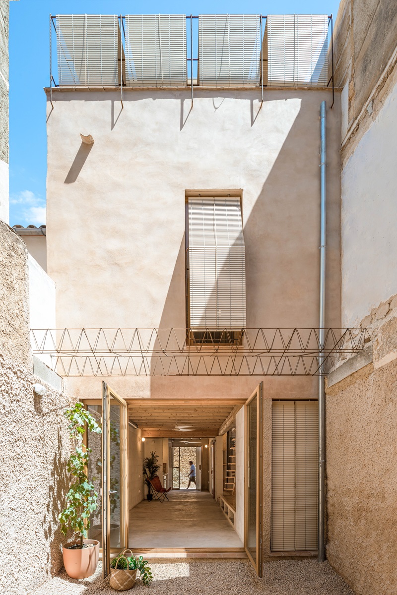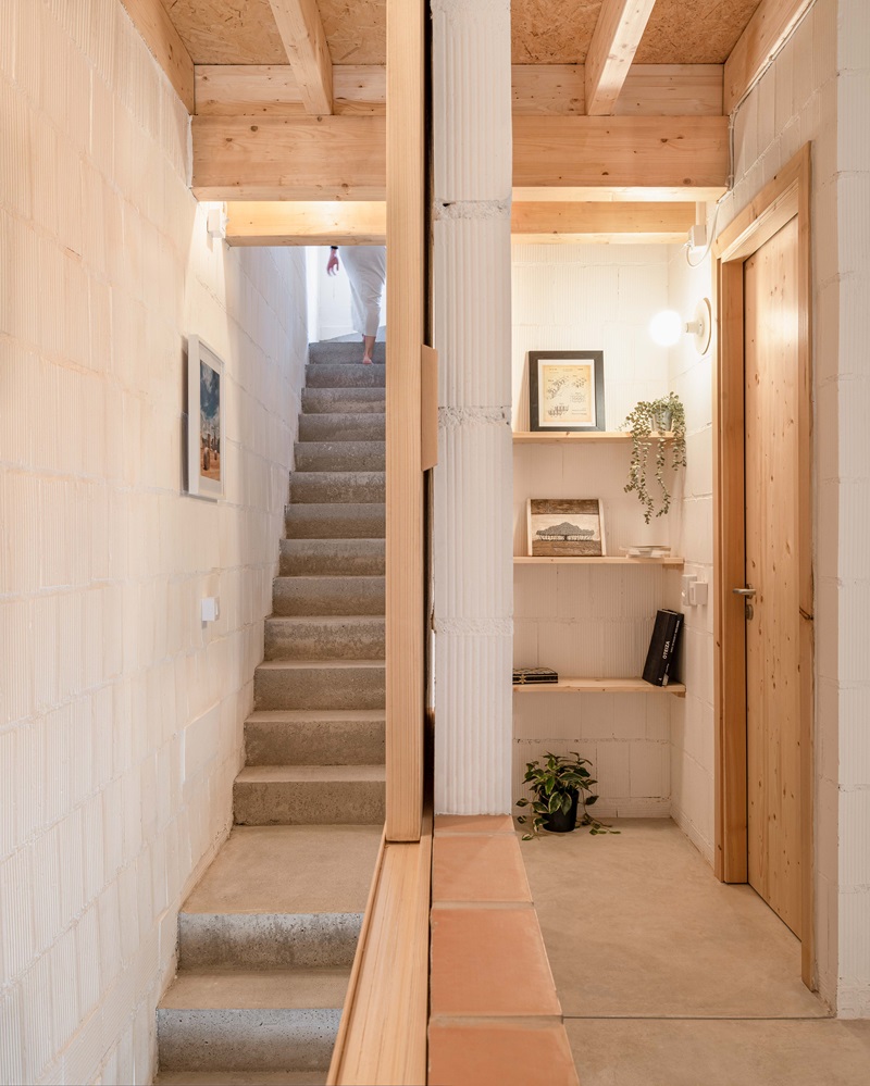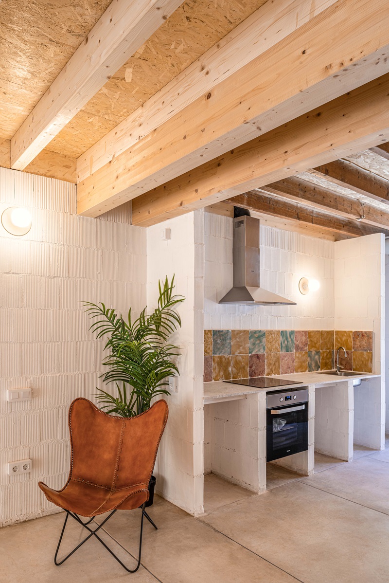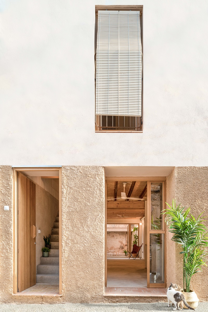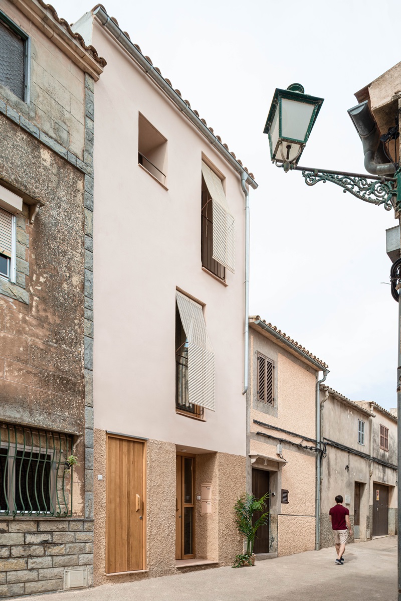 Los arquitectos Tomás Montis (director del estudio Montis Sastre Arquitectura) y Lluc Darder (fundadora de DRDR Arquitectura) intervienen en una de las estrechas calles del casco histórico de Artà, salpicado de fachadas de piedra y contraventanas pintadas de verde, para rehabilitar y adaptar de manera sostenible un pequeño edificio plurifamiliar entre medianeras de más de cien años de antigüedad que se encontraba en estado ruinoso. El trabajo en equipo da como resultado un diseño sencillo, que se mimetiza con las casas vecinas en el exterior y, al mismo tiempo, realza la belleza de los materiales al desnudo que definen la nueva estética de los interiores.