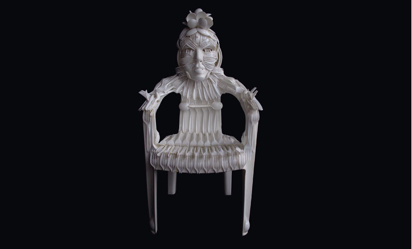 En la imagen superior, Sculptchair, obra de Carol Quint, 2001. Silla recubierta con cuchillos, tenedores y cucharas de plástico.