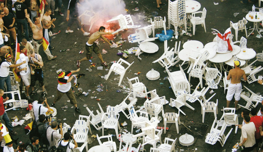 Foto Fabrizio Bensch/REUTERS. Revuelta tras un partido de fútbol en Stuttgart.