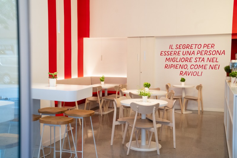 Imágenes superiores: 1) La pasta se hace a mano en el obrador de 26kg. 2) El pequeño restaurante es minimalista y su salón es pequeño por su concepto para llevar.