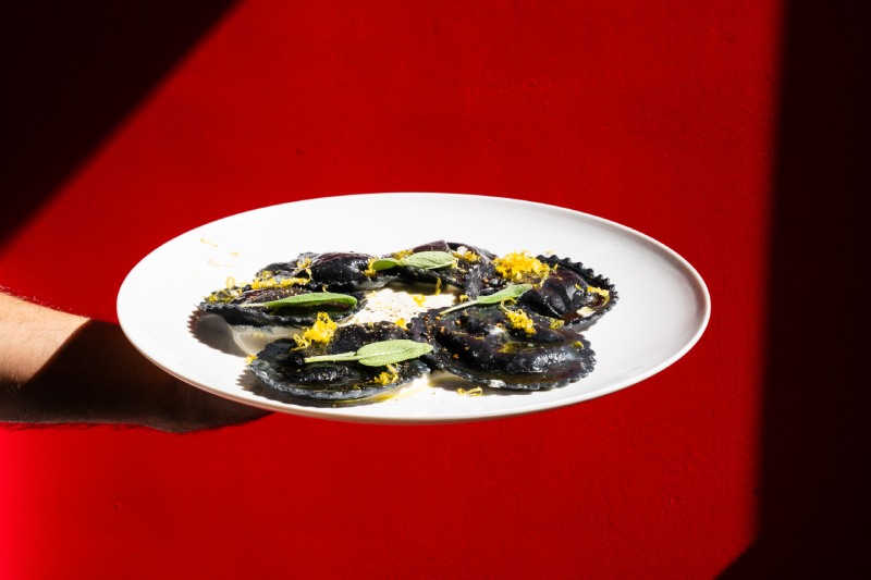 Imágenes superiores: 1) Ravioli neri di funghi e tartufo con cacio e pepe 2) El chef Maurizio Gorga, quien soñó este concepto de restaurante italiano
