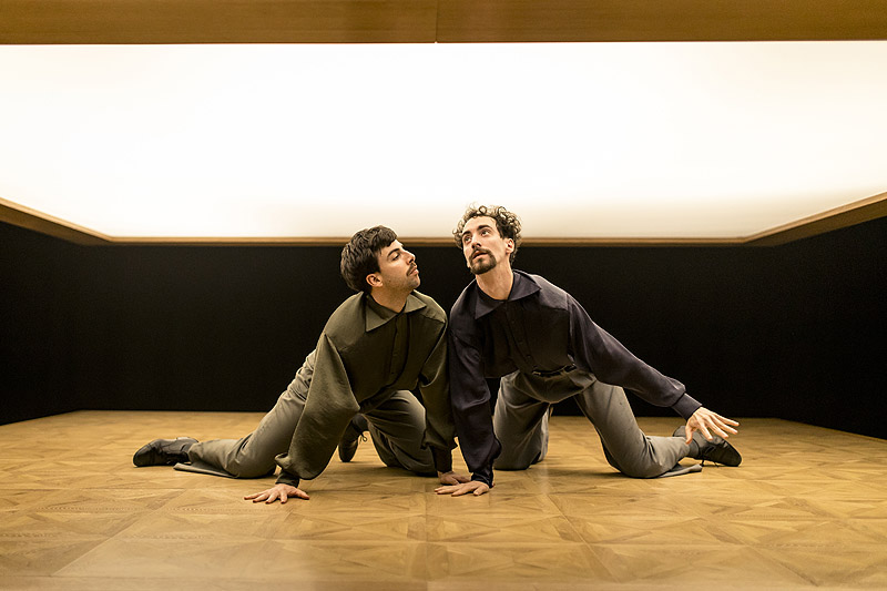 La coreografía nos lleva a un paseo a través de un fresco de paradigmas, atravesados y perforados por cuerpos que, enfrentándose entre sí, inician un violento ataque de lucha y amenaza, de deseo y amor.