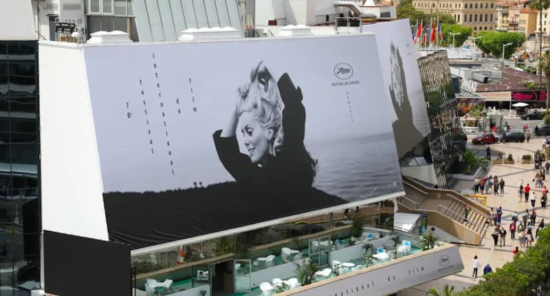 Vista de la sede central Grand Théâtre Lumière con el cartel oficial de 2023 © Maxence Parey / FDC