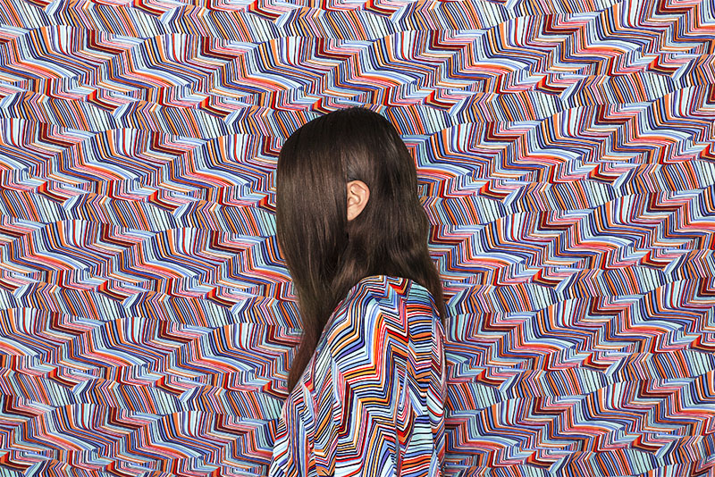 Belleza hipnótica, inestabilidad perceptiva, efecto camaleónico y juegos de ocultación generados por matrices infinitas; en un inquietante diálogo de formas geométricas y orgánicas, el trabajo de Ana Santos nos invita a descubrir la emergencia de anónimas figuras antropomórficas o enigmáticos fragmentos del cuerpo femenino como estrategia de cuestionamiento de la interacción del ser humano con nuestro entorno cultural y social. Frente a estructuras culturales y morales que se resisten a abandonar su estatus de poder, lo oculto elabora un relato de lucha y se nos revela como estrategia de supervivencia y resistencia, herramienta de la lucha de guerrillas en su eterna batalla contra la hegemonía del poder establecido. Ejercicio de mímesis con el entorno, tras la apariencia inofensiva de seductores patrones abstractos, busca tejer invisibles mallas, densas e impermeables, que coincidiendo con nuestro perímetro, contendrán en su interior todo aquello que pugne por escapar a su control.