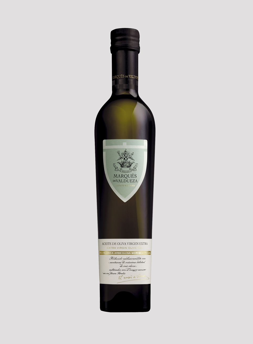 Marqués de Valdueza ha obtenido el premio al mejor aceite de oliva virgen extra en la categoría de “Frutado Maduro” que el Ministerio de Medio Ambiente y Medio Rural y Marino concede anualmente. Probablemente el de mayor importancia que se concede en España a los productores de aceite de oliva virgen extra. Este aceite está presente en mas de 20 países y se elabora en la finca que el Marqués de Valdueza que tiene en las proximidades de Mérida, donde cuenta con su propio olivar (Morisca, Arbequina, Picual y Hojiblanca) y almazara respondiendo al concepto de “aceite de pago”. El control sobre la producción es total, se le da una enorme importancia a la conservación del medio ambiente. Es un aceite de oliva virgen extra frutado intenso de aceituna, con mezcla de notas verdes y maduras. Destacan la manzana y el tomate verde, la hierba y la alloza con intensidad ligera, y con mayor intensidad en las notas de otras frutas maduras y la almendra, también madura. En boca es de entrada muy dulce, ligeramente amargo, algo más picante y muy almendrado, en un conjunto muy equilibrado. Si señor.