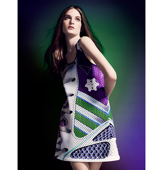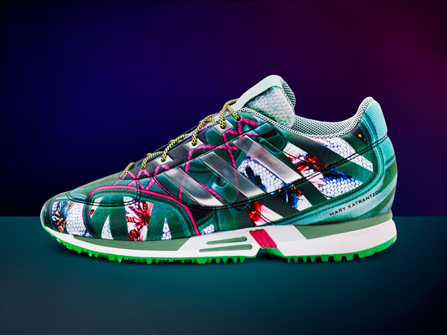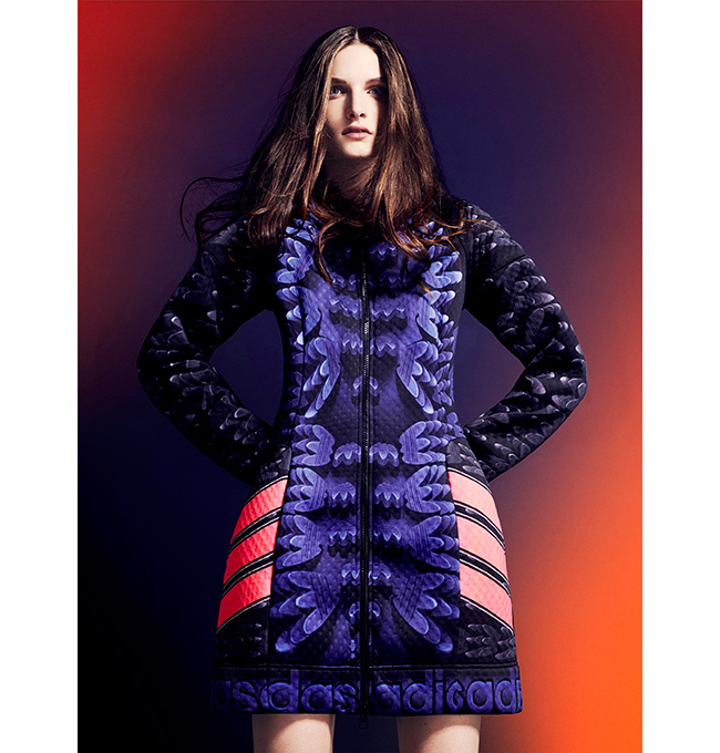 Se trata de una colección cápsula donde está perfectamente reflejada las señas de identidad de ambas marcas. Por un lado, las siluetas ultra-femeninas y los estampados calidoscópicos de la joven diseñadora griega formada en Londres, Mary Katrantzou, la niña bonita de la moda británica actual. Y por otro, la herencia gráfica de adidas Originals aplicada a gran escala sobre tejidos técnicos como mallas y neopreno. Eso en cuanto a vestidos y tops. Las zapatillas también han recibido el toque mágico de la diseñadora. Sin duda, el resultado es “original”. “Una nueva estética para colección de mujer de adidas Originals”, tal como afirma Dirk Schoenberger, director creativo global de la división adidas Sport Style.