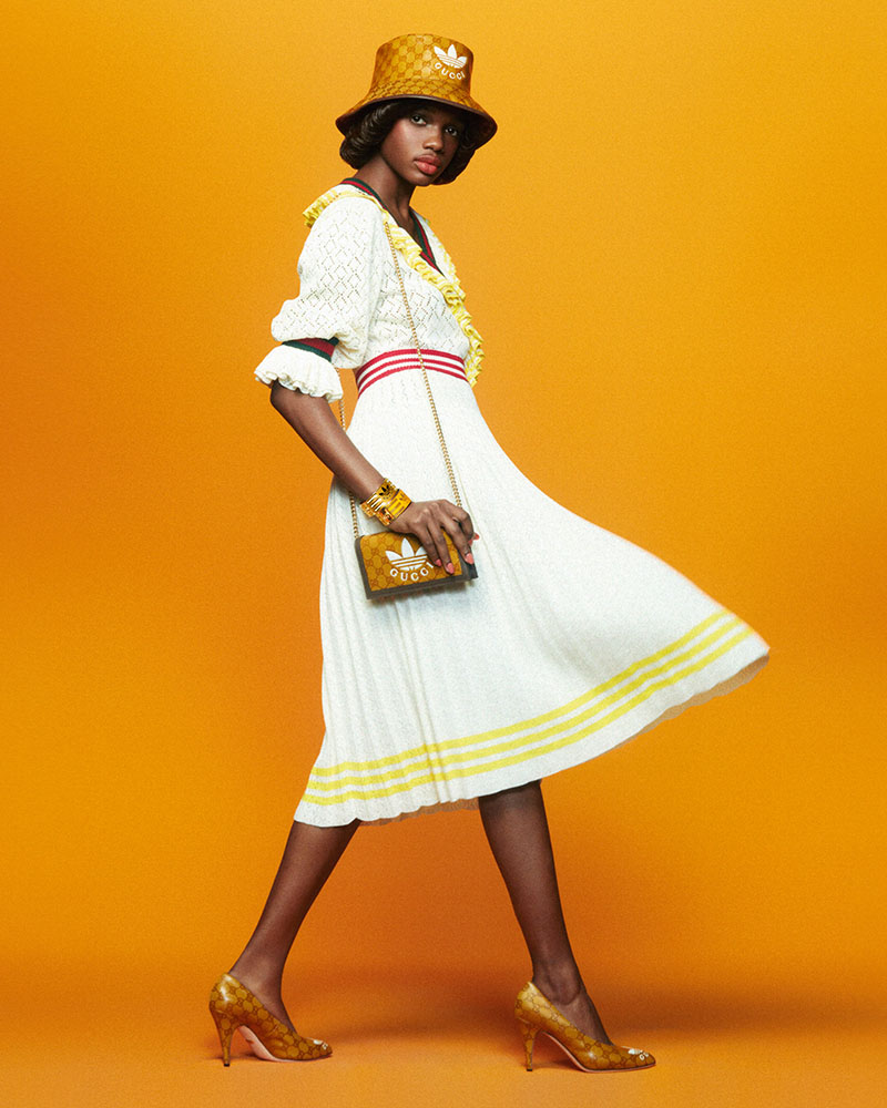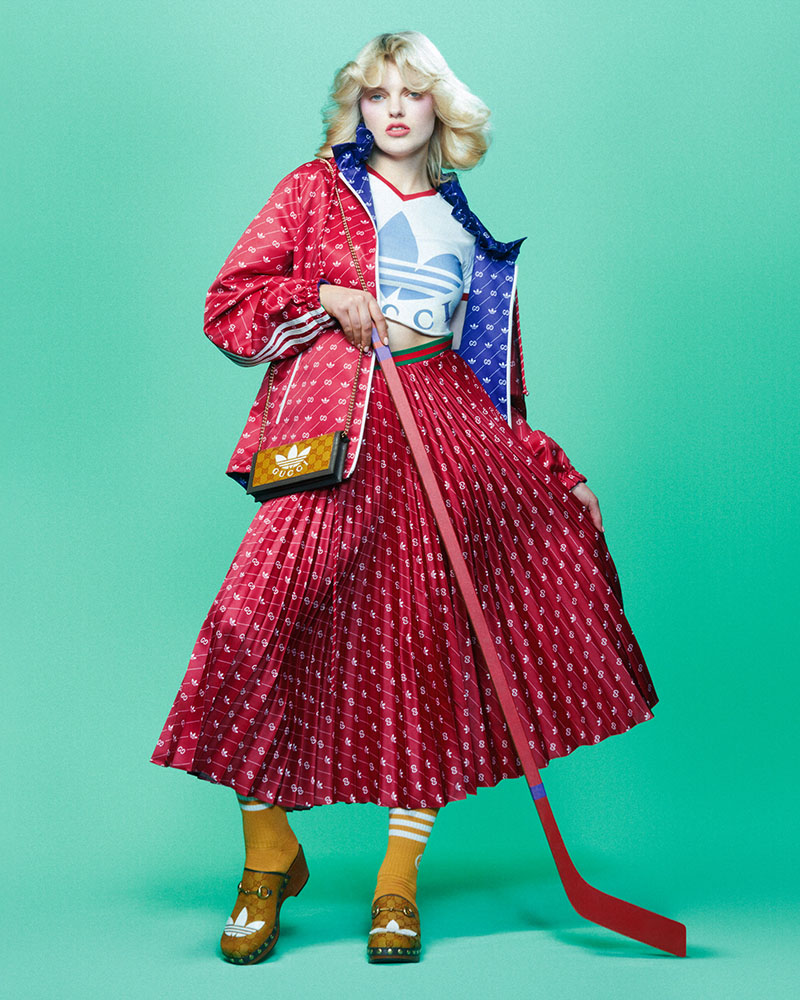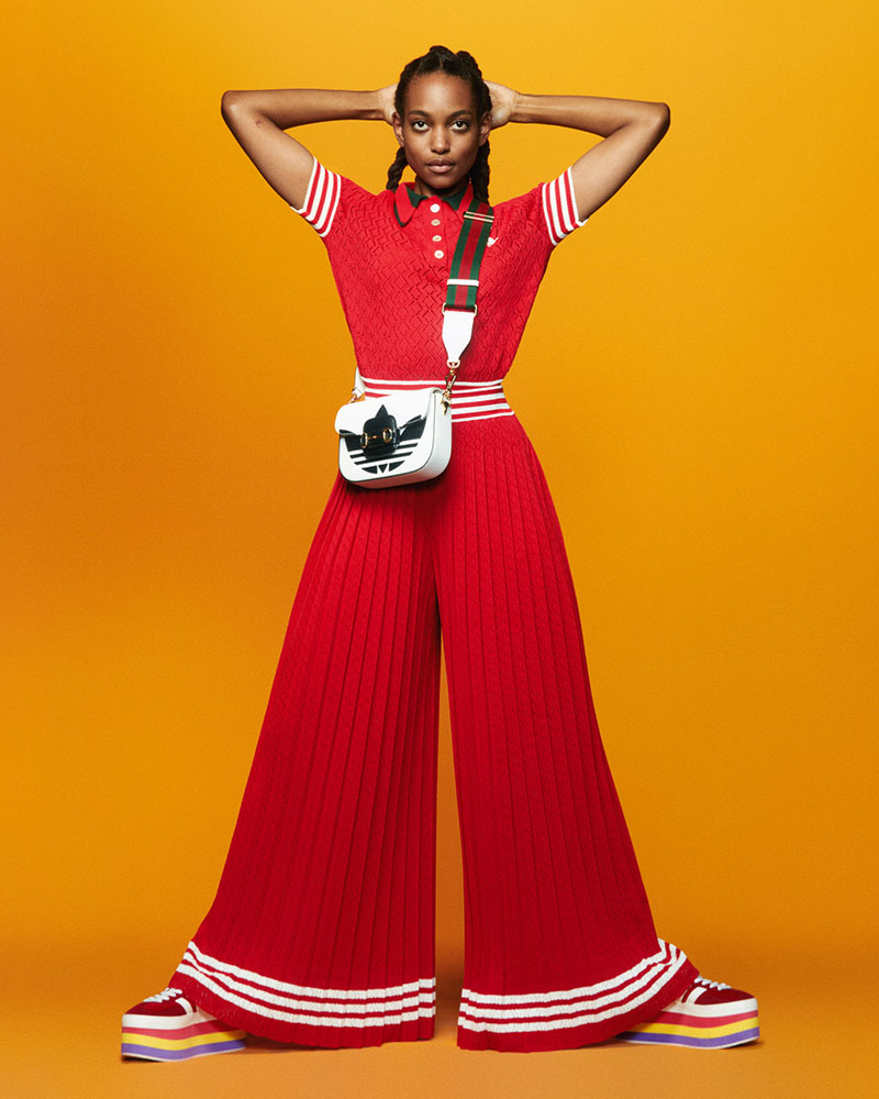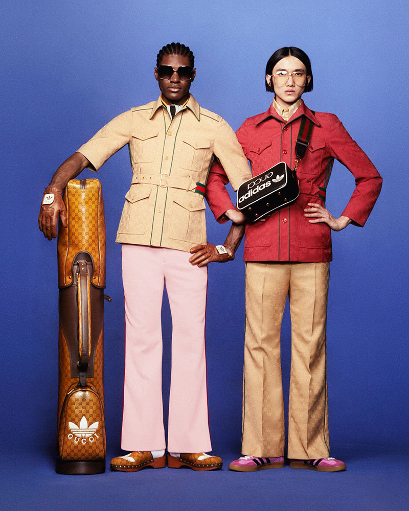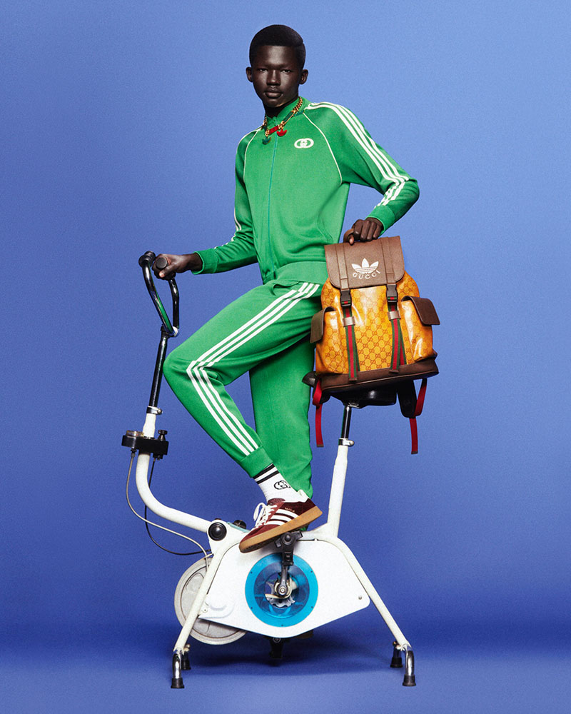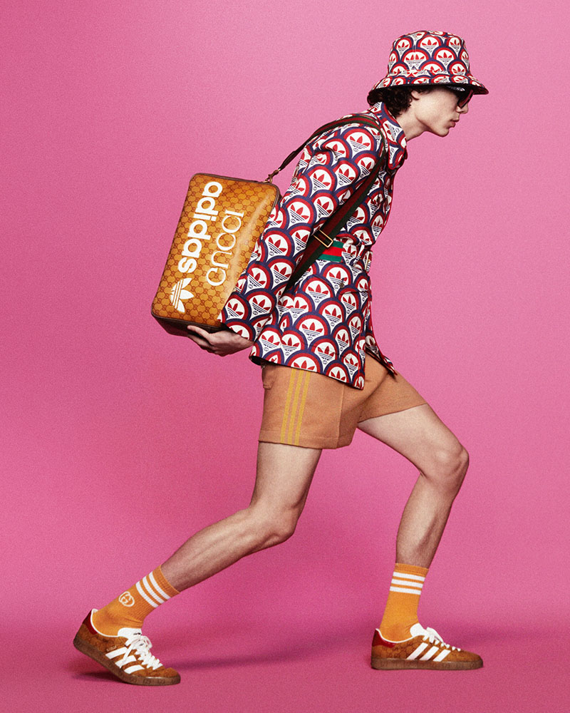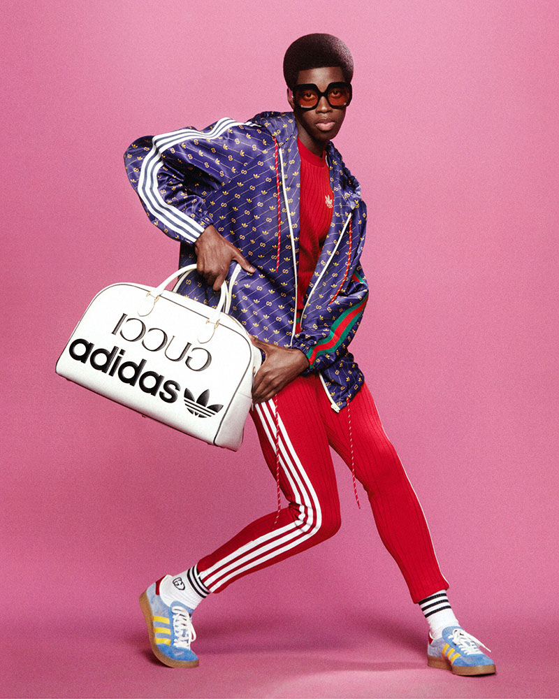 Por supuesto no podían faltar algunos de sus elementos más reconocibles, como el estampado monogram de Gucci o la triple linea de adidas. También nos llama la atención la ingeniosa fusión de los logos de ambas marcas, que podemos localizar en casi todos los modelos de la colaboración.
