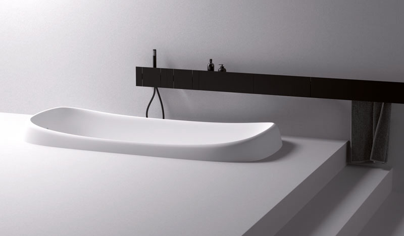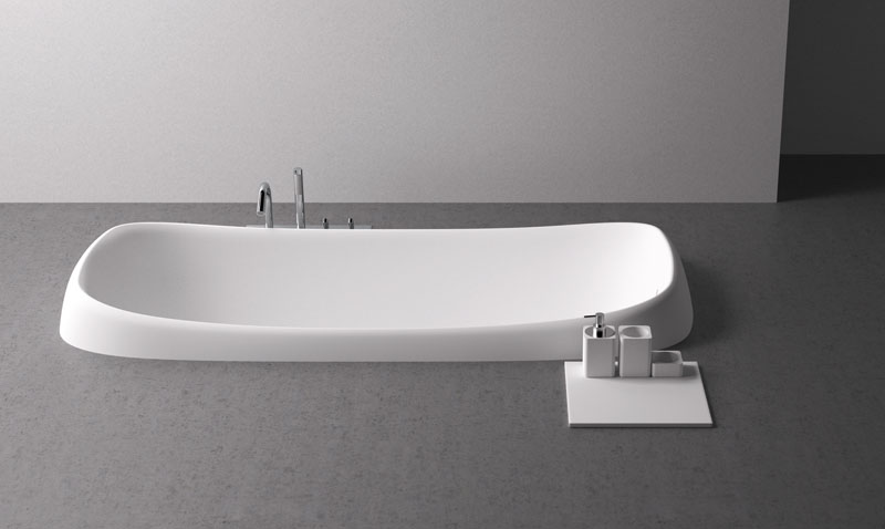 Arriba: Bañera Pear Cut diseñada por Patricia Urquiola. Un acertado diseño que mezcla la sencillez minimalista con las formas clásicas de una bañera.