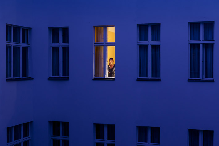 En esta ocasión la muestra “Hotel Bogotá, Berlín” nos adentra en un escenario concreto, el edificio del propio hotel, construido en 1911. Edificio histórico de Berlín, que en los años treinta acogería el estudio de la fotógrafa Yva, profesora del Helmut Newton. Durante el Nacionalsocialismo el edificio fue expropiado y el “Reichskulturkammer” se trasladó allí. En 1964, un año después de su regreso a Alemania, Heinz Rewald, judío que se salvo del holocausto nazi, fundó el Hotel Bogota y se convirtió así en buque insignia de la ciudad. Finalmente en 2013 el Hotel cierra sus puertas.