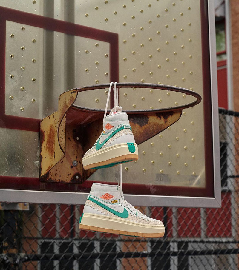 Este regreso a la Jordan 1 de Union LA junto a Bephie’s ofrecen también una silueta exclusiva para mujeres. Air Jordan X Union LA X Bephie’s presentan también una zapatilla AJ1 Elevate High, con una suela chunky de plataforma. En cuanto a estética, los elementos tejidos siguen siendo el foco central de la silueta, que ahora se presenta a color contrastante. El upper, por su parte, se ha construido en piel blanca de aspecto nuevo y se ha contrastado con elementos verdes y naranjas en costuras y swoosh. En su parte inferior, una mediasuela de amarillenta reposa sobre una suela de color goma muy clásico.
