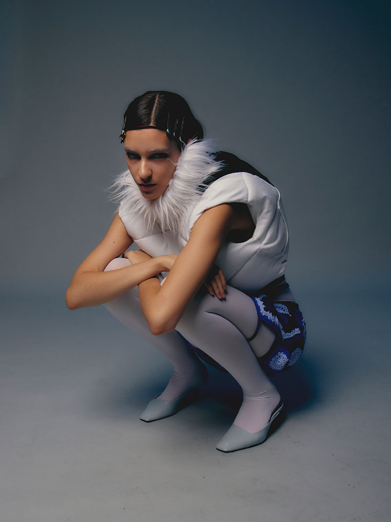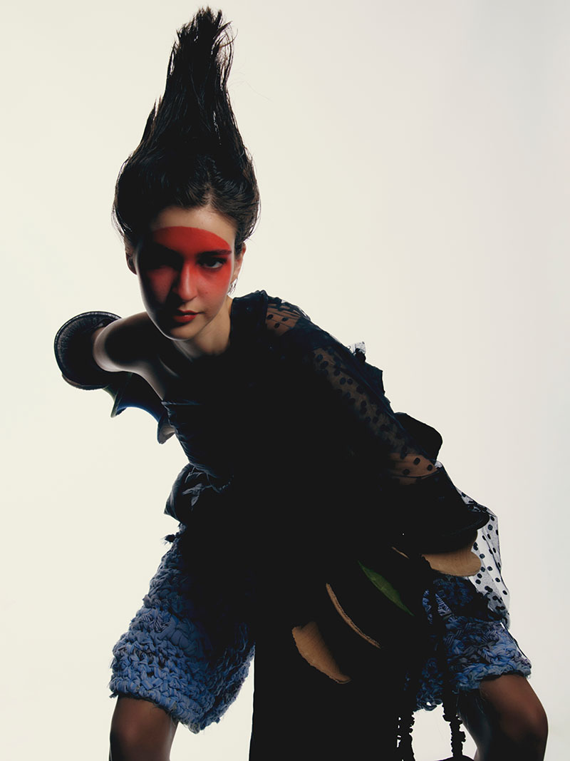 Alba Melgarejo es la joven estilista y diseñadora de moda que ha unido fuerzas con el fotógrafo Pep Bestard en el proyecto editorial Human Issues. Ejerciendo su papel como directora creativa, ha materializado conceptualmente 4 fobias: Fobia a la luz, fobia a la deformación del cuerpo, fobia a la asimetría y por último la fagofobia, un miedo que ella misma sufre…