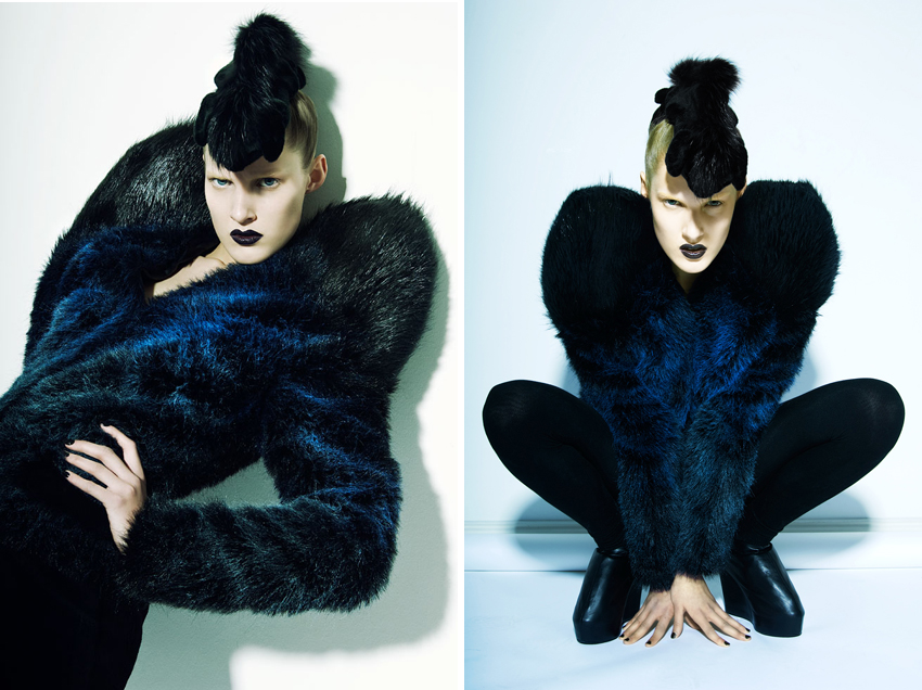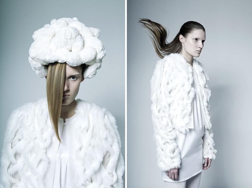 Alba nos escribió un mail el pasado 5 de junio desde Berlín. Nos contaba que, aunque era de Barcelona, estudiaba diseño de moda en la Universidad der Künste. Aprovechó para enviarnos las imágenes de, en ese momento, su última colección. Estaba inspirada en el mundo mágico y surreal de los cuentos: el bueno contra el malo, la piel sintética contra la real… Era un proyecto de la escuela, y los alumnos, entre ellos Alba, tenía que mostrar su opinión argumentada sobre usar o no pieles naturales. Una decisión que, como dice Alba, todo diseñador debe afrontar tarde o temprano. Las fotos de esa colección las verás aquí abajo. Las de arriba forman parte de la nueva colección de Alba Prat, esta vez inspirada en el futuro del mar. Una de ellas es portada del número 100 de Neo2 (ya en kioscos). En ese mismo número conocerás un poco mejor a Alba, un talentazo.