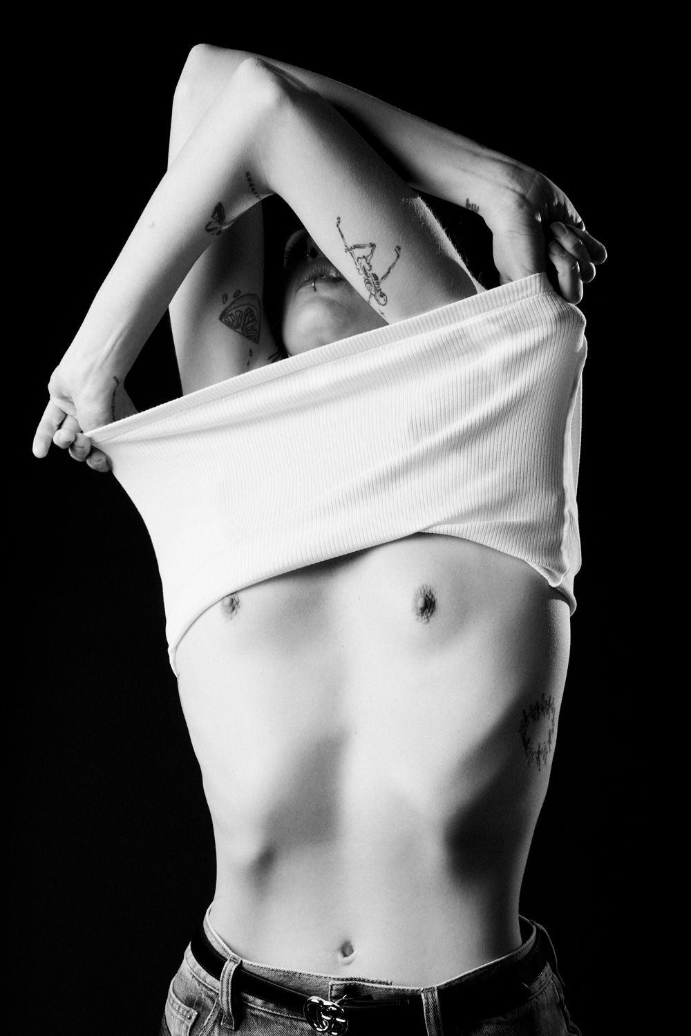 (Alice Wonder) Es el abrazo más grande que me he dado nunca con respecto a este tema… he renegado de mi identidad mucho, y todavía lo hago. No me parece mal pasar un poco del tema y sentirse ambigua, es una cosa que nació conmigo y puede que muera también conmigo en esta vida. Aquí planteo por fin las reglas diferentes de un juego. Ser ambas y ser ninguna. Fluir. Creo que son conceptos que hay que empezar a traer a la mesa del arte, y en este país más, sin que sea un chismorreo o algo extremo que deje espacio al odio. Quiero traer una manera diferente de pensar que aboga por la libertad de sentimiento y de estructuras.