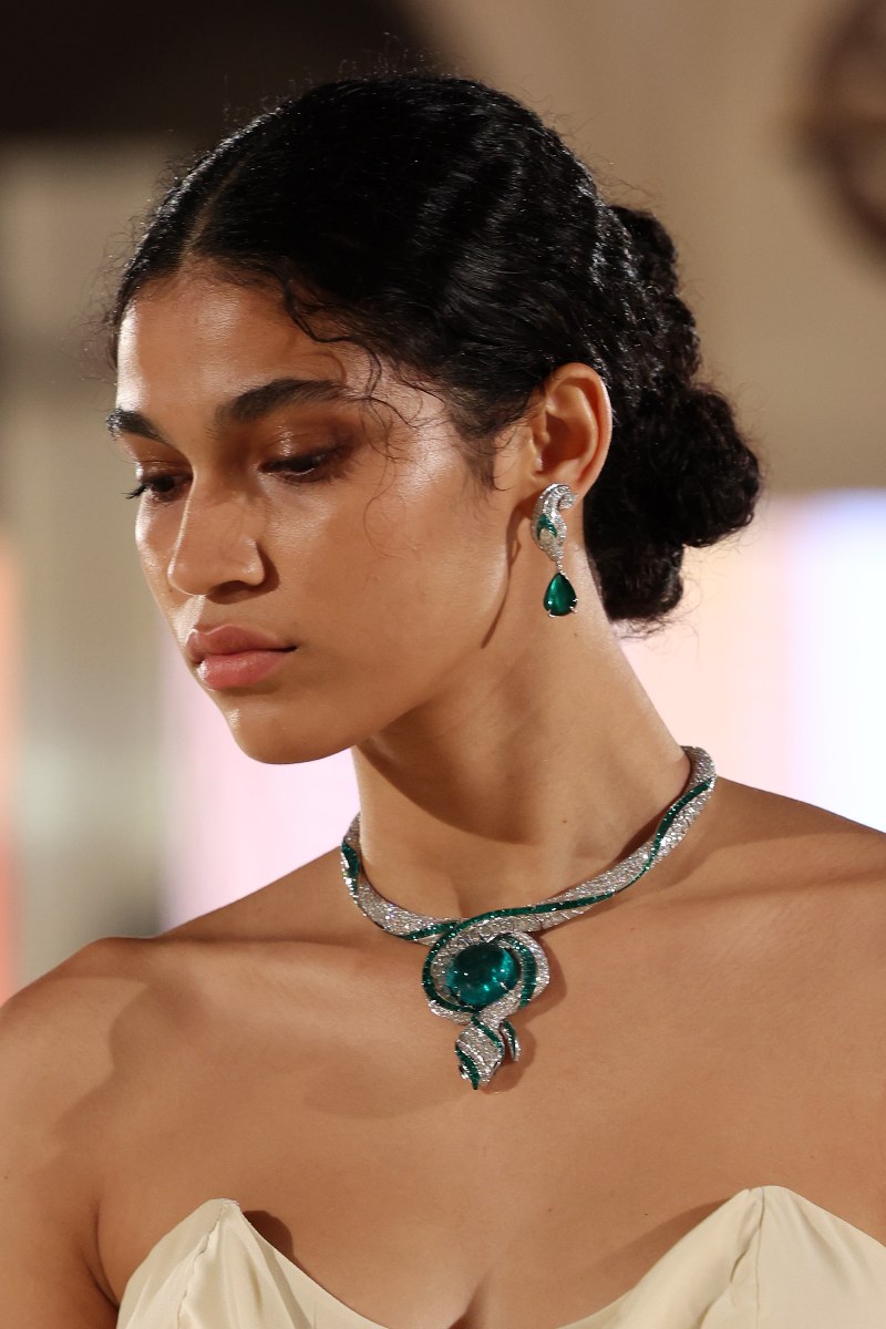 Como gran novedad en este evento de Bvlgari, se mostró el espíritu innovador de la marca. La mejor prueba se vio en el collar que hemos mencionado antes, Serpenti Aeterna. El público se centró en esta joya porque es la demostración del valor artesanal, más de 2400 horas de trabajo, y como sale de un diamante en bruto, un total de siete gotas con un total de 140 quilates. En conclusión, es el mejor ejemplo de la historia de los 140 años de Bvlgari. Por último, no podemos obviar la gargantilla Aurea Chandra, que es una revisión de la icónica línea Chanda de los años ochenta; o el collar Tubogas Flower of Time, realizado con las técnicas más innovadoras de la casa. ¿Cuál es el resultado de esta colección? Aeterna es la conexión del pasado, presente y futuro de Bvlgari.