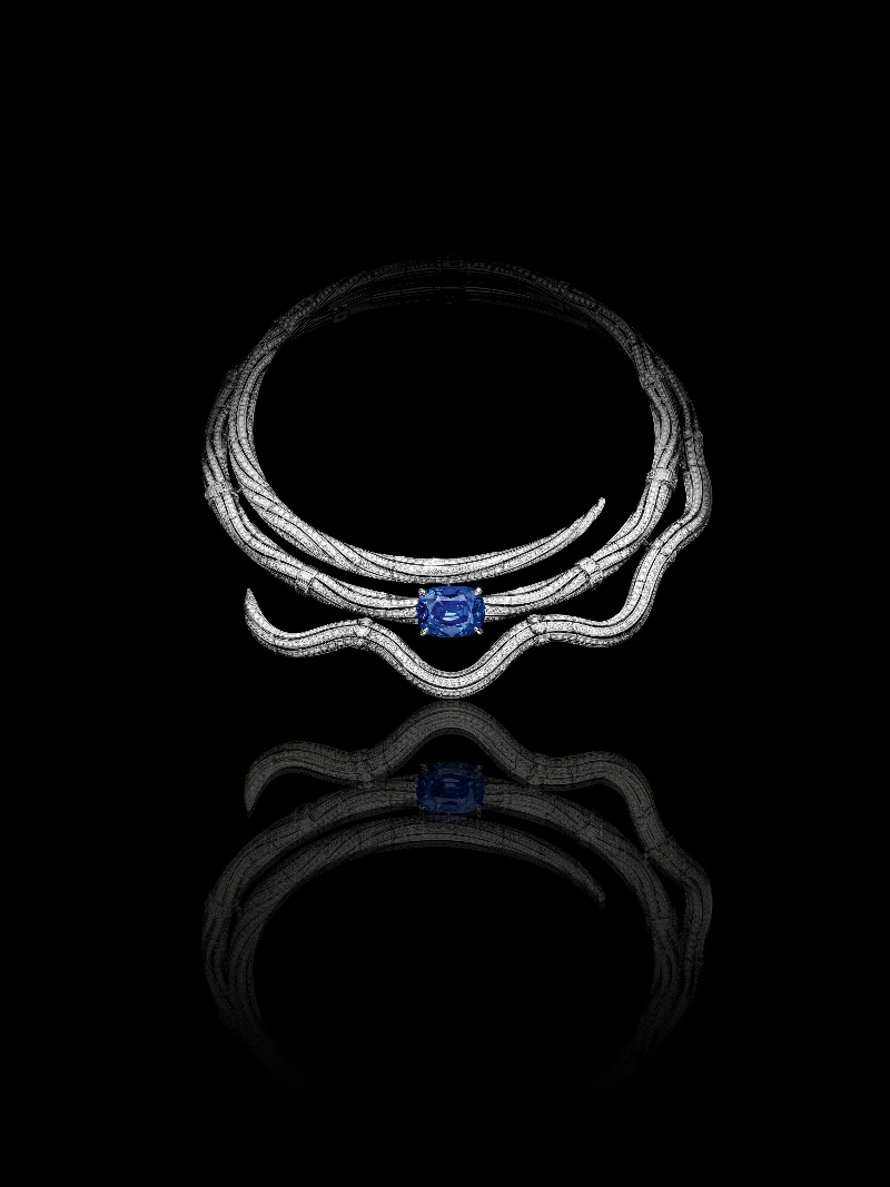 Mediante la máxima expresión de la libertad creativa, la alta joyería de Louis Vuitton se convierte nuevamente en un viaje que invita a ser más artísticos. Se puede decir que es un billete sin retorno hacia un universo de creatividad ilimitada, donde podemos jugar y explorar, y que no se queda en ser simplemente un collar más. Por ejemplo, fíjate en el collar del capítulo Keeper. Inspirado en el ojo que todo lo ve, la pieza central es un collar de oro y diamantes que tiene en el centro un zafiro azul de Sri Lanka, que simula la pupila de un ojo. Es un claro homenaje al conocimiento, la sabiduría y a la belleza que revela lo que se desea conocer.
