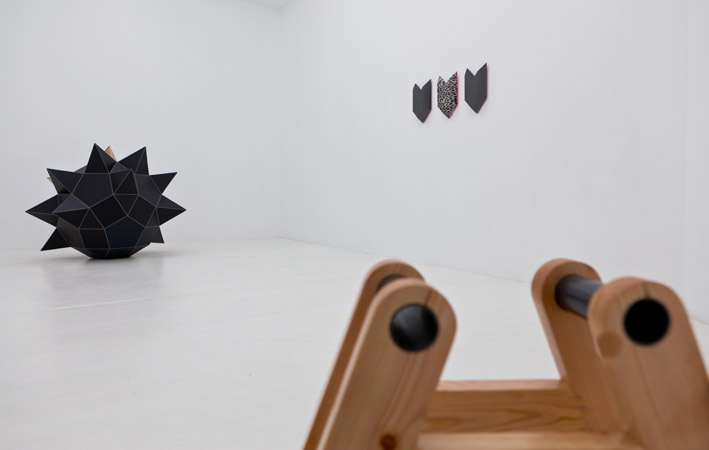 Las esculturas de esta exposición remiten en sus formas a criptonitas, cristales espaciales, estrellas y naves aerodinámicas. Reflexionando sobre su obra, Álvaro Gil escribe: “Gran parte de mi trabajo artísti­co y de mis investigaciones, se centra en construcciones basadas en el concepto de customización y en transformaciones superficiales hechas a medida, desde una actitud bricolajista enlazada a prácticas de tipo DIY (Do it Yourself)”. El artista navarro avanza por acumulación de capas aunque finalmente son sólo las superficiales las que actúan como carcasas transformativas dando al objeto un nuevo valor formal y concep­tual. Ejerciendo una postura procesual y relacional a través del reciclaje y del montaje, construye artefactos donde lo funcional y lo estético se conforman extrañamente. El presente proyecto se sitúa justamente en el encuentro de lo estructural con lo meramente decorativo.