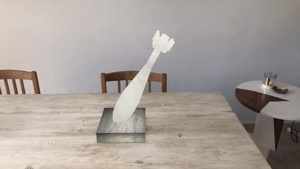 Escultura «Fuego Amigo II» de Amarist Studio convertida en realidad aumentada.