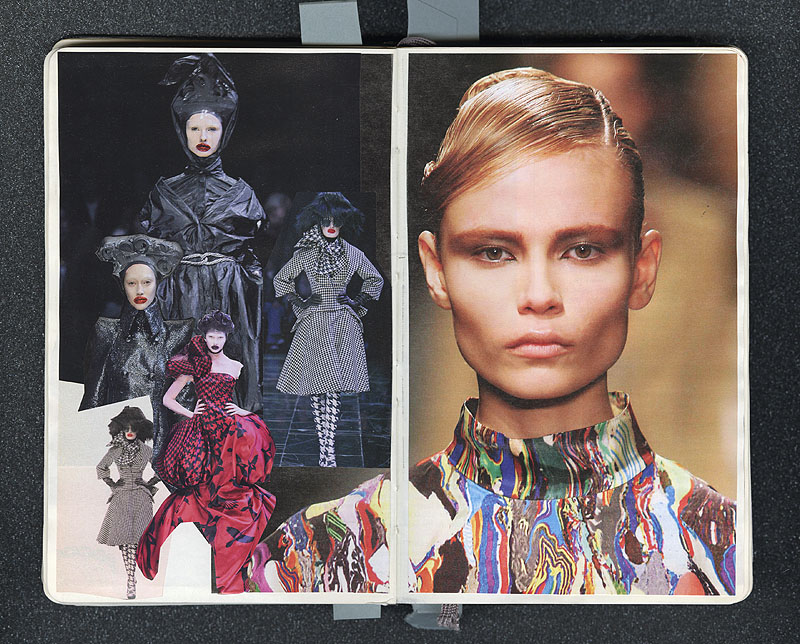 MoMu, stylist David Vandewal collages de trabajos de make-up de Peter Philips, 2003. Izquierda: Alexander McQueen Autumn-Winter 2009-2010, derecha: Dries Van Noten Autumn-Winter 2008-2009
