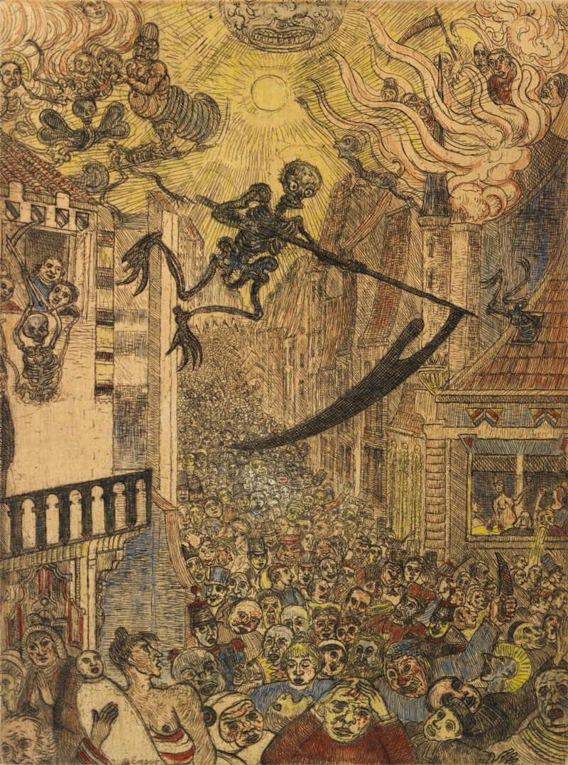 Imagen superior: KMSKA, Masks Confronting Death, 1888. MoMA, New York