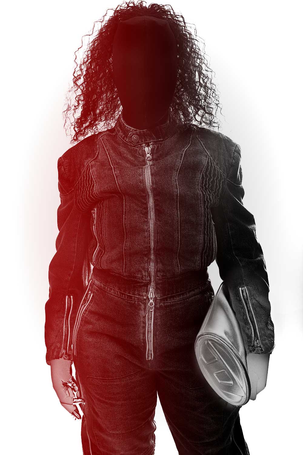 Arriba y abajo: Total look y bolso Diesel + Joyería Alex Sobron