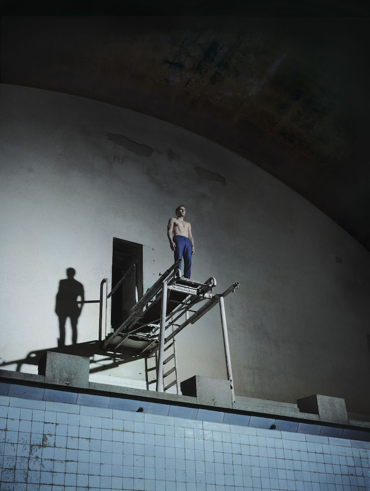 Andreas Mühe ha sentido atracción a lo largo de su carrera por la estética megalómana no solo del nazismo, sino de la dictadura socialista de la Alemania del Este. Todo forma parte de lo mismo: “la fascinación alemana por la grandeza”. Las fotografías realizadas en la piscina abandonada del complejo construido para alojar a los atletas en los Juegos Olímpicos de Berlín de 1936, Schwimmhalle (2009) muestra la actitud y estética escultural atlética de las juventudes de la RDA.