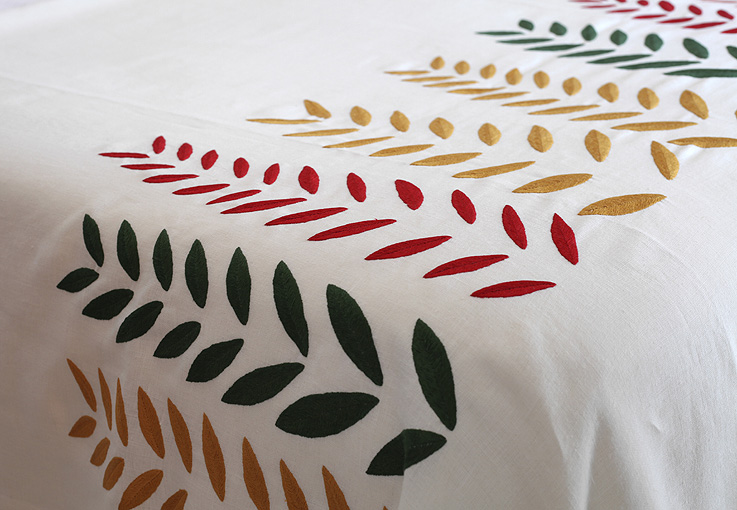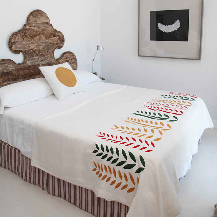 La serie está compuesta por manteles, almohadones y colchas de lino bordados a mano con técnicas centenarias sobre dibujos de Antonio Ballester Moreno. Cada una de las piezas está numerada, pertenece a una serie limitada de 30 unidades y se realiza solo por encargo.