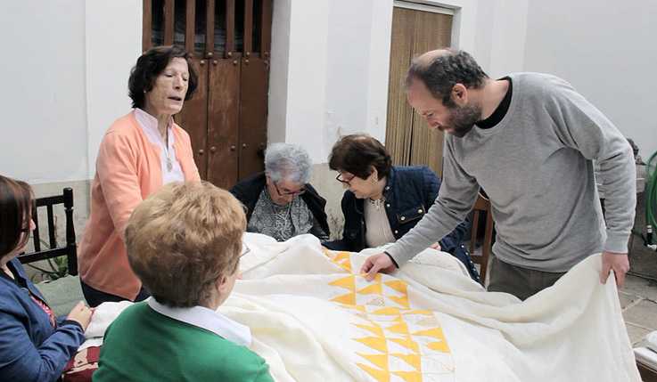 “Impulsamos la tradición mediante la colaboración entre artista y artesano para crear verdaderas obras de arte textil”, afirman Silvia Delgado de Torres y Teresa Muñoz-Rojas, socias fundadoras de Iloema. La serie que ahora se muestra es fruto de un intenso trabajo de descubrimiento de Antonio Ballester Moreno, que conoció en profundidad la técnica y la tradición de las bordadoras de una zona rural de Toledo. Creó dibujos que mostraba a las bordadoras y ellas le proponían cómo llevarlos a cabo. El resultado demuestra que la artesanía está cada día más cerca de la creación artística contemporánea.