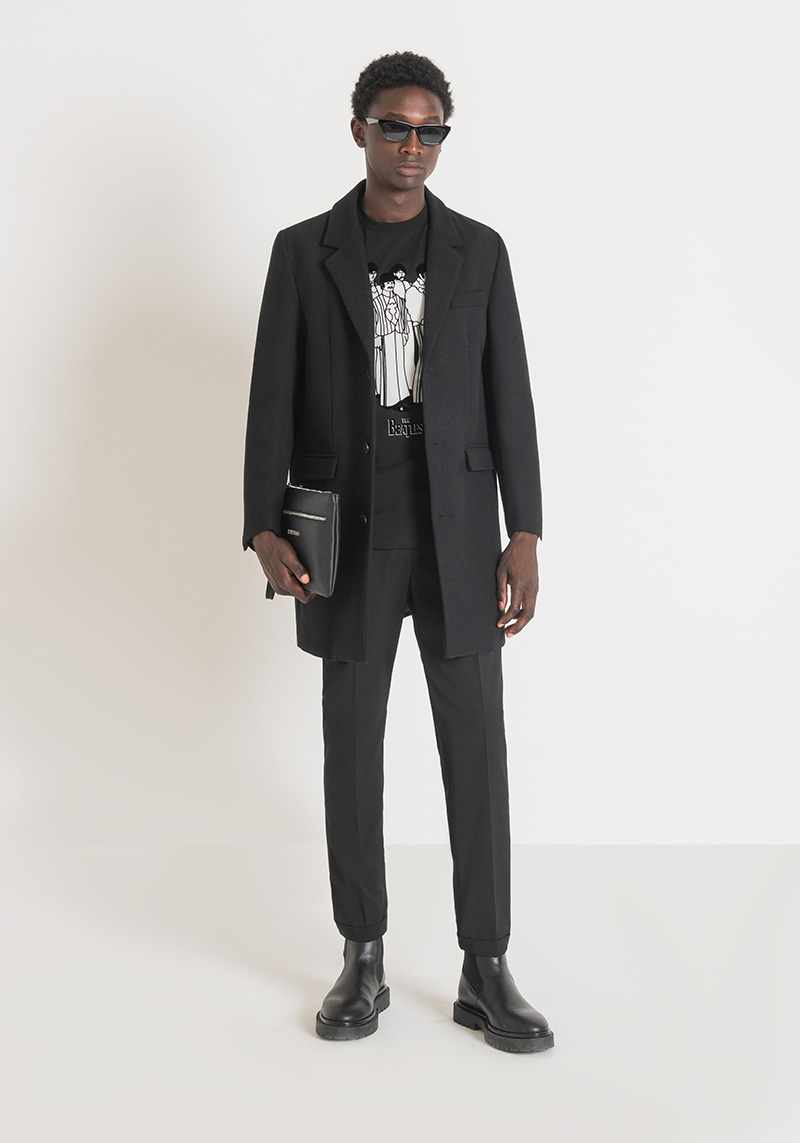 Como muchas de sus colaboraciones anteriores, la cápsula Antony Morato X The Beatles no brilla por su extensión. Brilla, en su lugar, por el heritage y la estética de los estampados. Esta propuesta recoge gráficos de la era Sgt. Pepper’s Lonely Hearts Club Band y los reimagina a través de una óptica mucho más minimalista y sobria. Recordemos que ese álbum, famoso por su estética psicodélica y llena de color, era de todo menos minimalista.