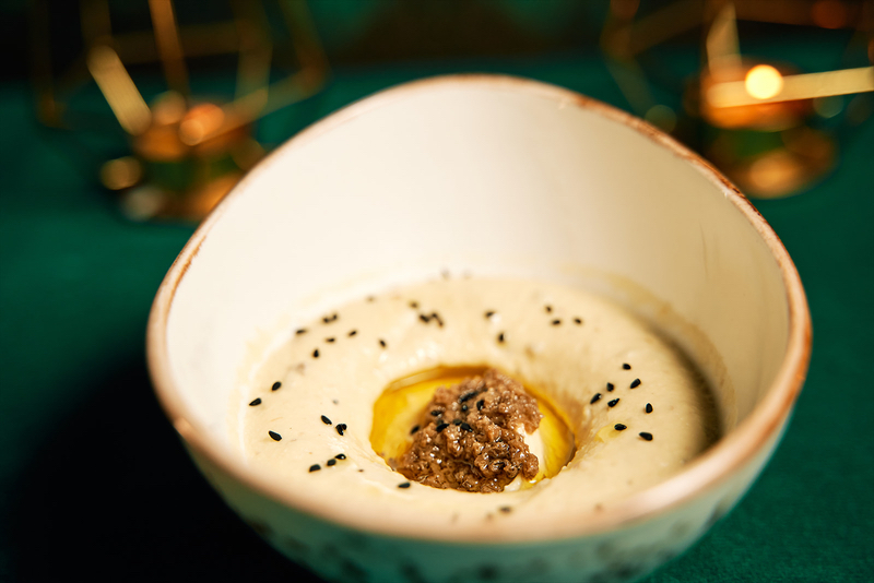 Aunque el menú de Antuanet pueda parecer tradicional, su dosis de creatividad sale a relucir con atrevidas versiones de las recetas más conocidas de Oriente Medio. Demostrado queda con sus dos tipos de Hummus (además del original, que cuesta 11€): uno con trufa negra (12€) y otro con salsa de pesto (12€). Imprescindible, por otro lado, probar cremas como el Mutabal (12€), de berenjenas asadas, o el Labne (11€), con yogur de vaca, hierbabuena y AOVE. Esta última con pepino opcional, que aporta un toque más refrescante.
