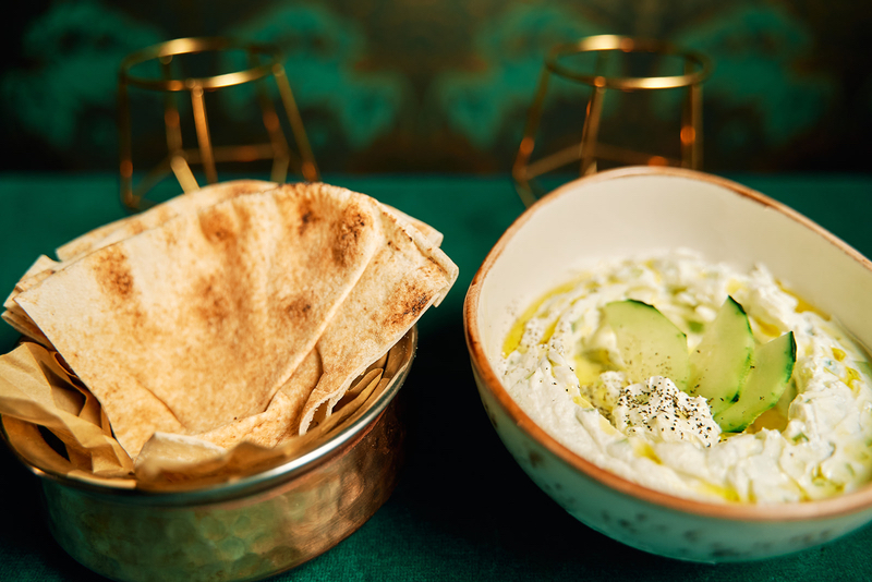 Imágenes superiores: Hummus y Labne con pepino acompañado de pan libanés, de Antuanet