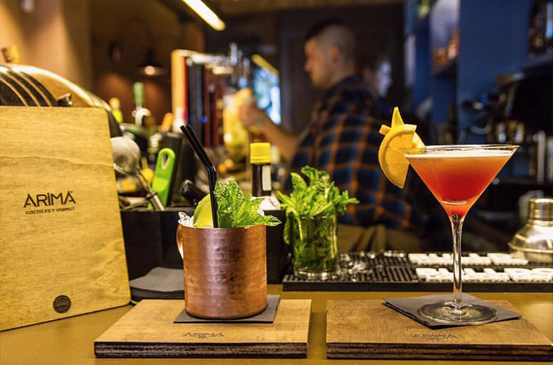 Imagen superior: vermuteo y aperitivo en Arima Basque Gastronomy