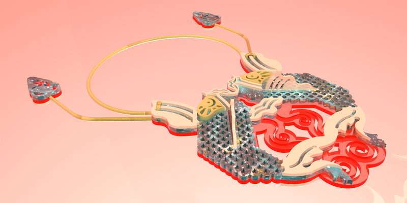 Los procesos y las herramientas de diseño son en realidad muy similares, y ya había trabajado con Fru*Fru en la escala del cuerpo. Entiendo cada joya como si del ornamento de un edificio se tratara, representando a una cultura y una respuesta a unas condiciones sociales y urbanas específicas. En cierto modo, estas joyas funcionan del mismo modo que un ornamento en una catedral y toman al cuerpo como punto de partida desde el que construir una identidad y transmitir un mensaje.