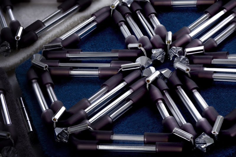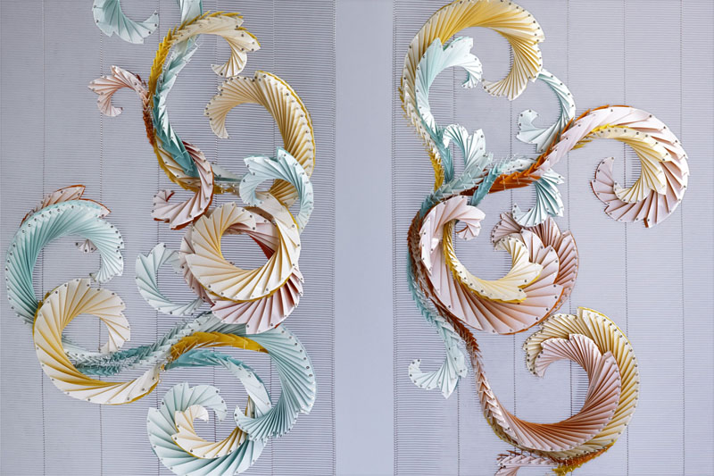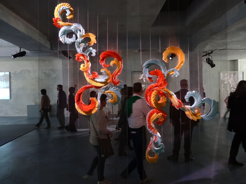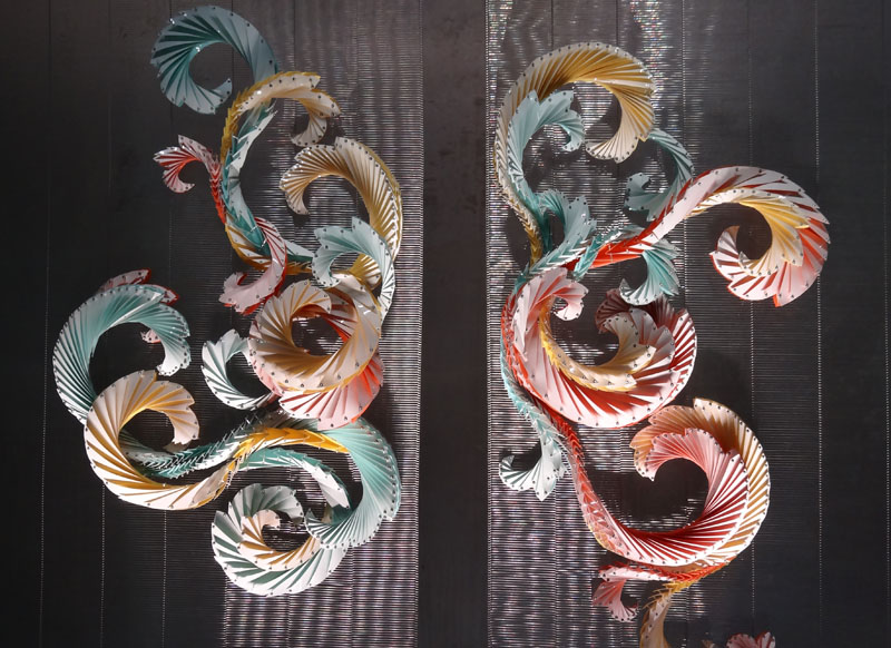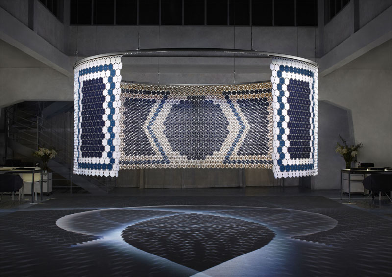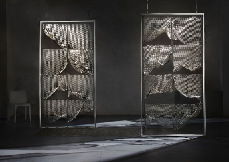 Uno de los talleres que bordan para Chanel se adentra en el mundo de la arquitectura. Atelier Montex (casa fundada en 1939) crea MTX Broderie Architecturale una nueva línea de negocio y de investigación que lleva los conocimientos de la alta costura al mundo del interiorismo o arquitectura. Los directores creativos del proyecto son Annie Trussart (1954) y Pierre-Alain Cornz (1976). Una mezcla de materiales típicos de ferretería como cables de acero, bastidores, mallas metálicas, planchas de poliéster, tubos de acero o vidrio se mezclan con técnicas y materiales de la joyería y de la alta costura. El resultado final son biombos, paredes translúcidas o esculturas colgantes que dividen ambientes, separan espacios y llenan vacíos existenciales. En un primer vistazo puedes imaginarte tiendas y hoteles de lujo… pero échale imaginación y visualízalo en otros espacios ¿No me digas que no funciona? Algunos ejemplos de trabajos creados con esta técnica los pudimos ver en el Distrito de Diseño Brera (Milán) en la exposición “La Broderie fait le mur” (El bordado es la pared), el pasado mes de Abril.