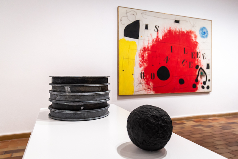 Fondo: Joan Miró, Silence (1968). Izquierda: Joseph Beuys, The Silence (Ingmar Bergman) (1973). Derecha: Tres, Bola de Silencio Negro (2003)