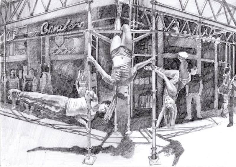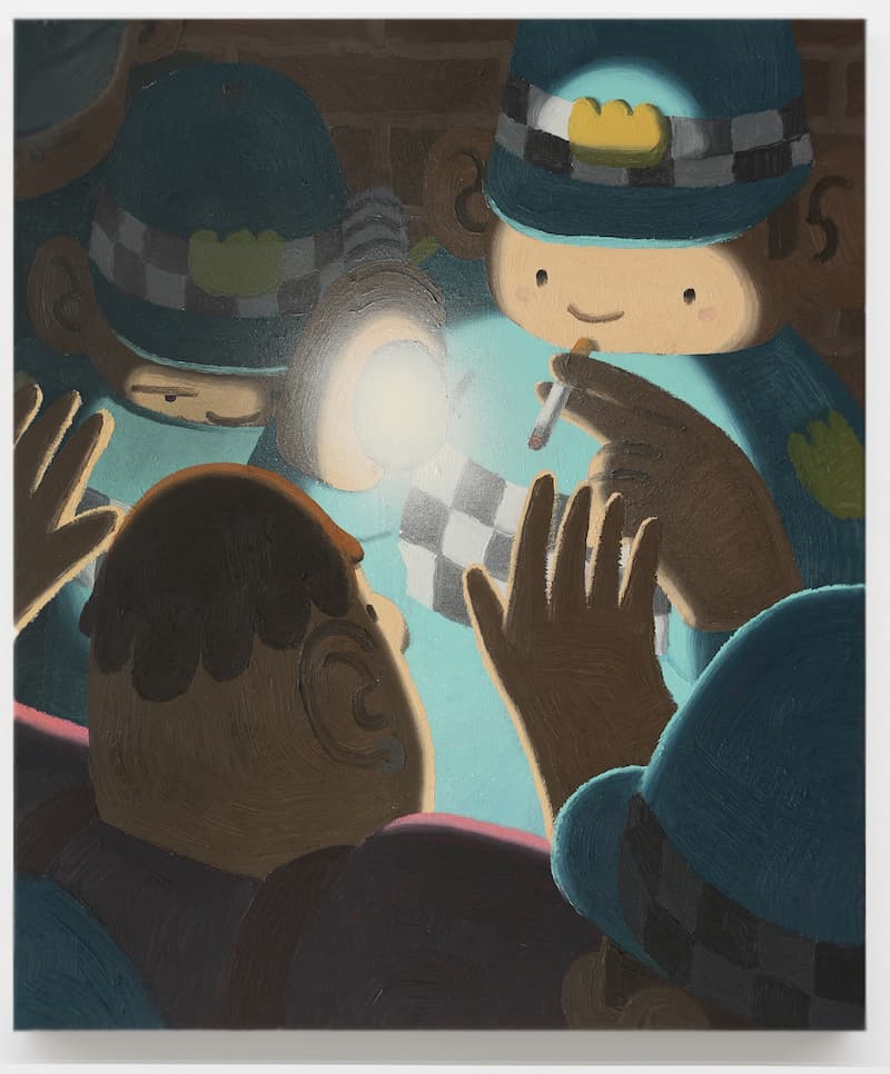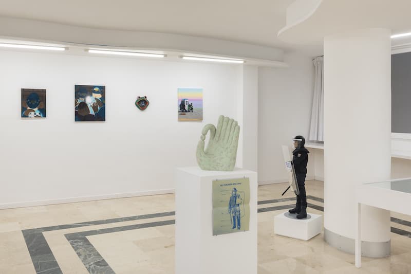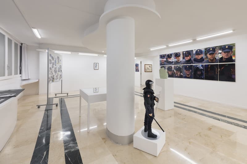 Estas obras, junto con piezas de la colección ADN y de otros artistas, exploran la iconografía y temática policial. Desde el dibujo histórico de Eduardo Arroyo hasta las esculturas satíricas de Eugenio Merino, la muestra ofrece una mirada crítica y humorística sobre el papel del orden público en la sociedad contemporánea.